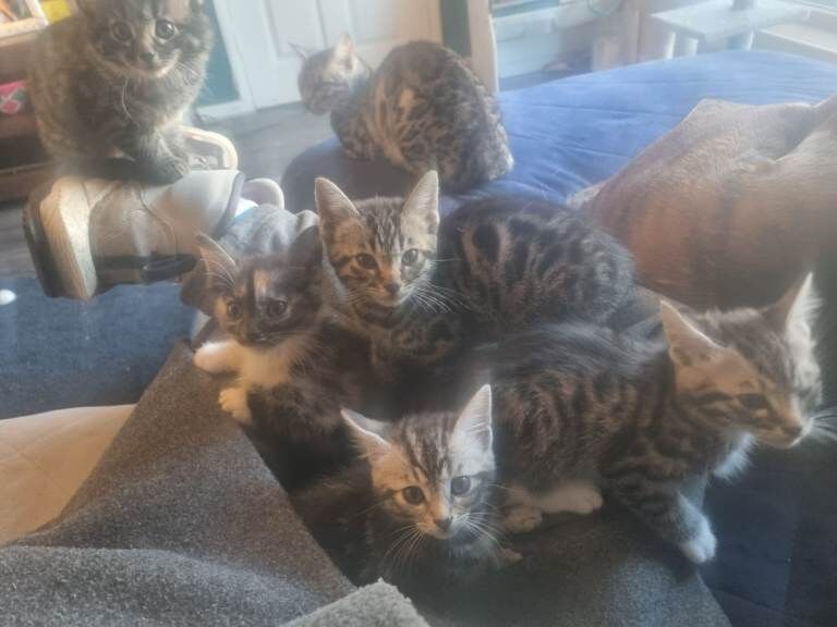 7 wk old, vet checked bengal kittens, viewed with mum, around dogs and other pets, noisy household so used to hustle of a household.Sweet natured. Litter trained. Looking for their forever homes.